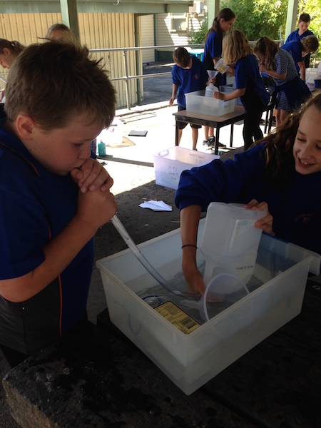 Students had a wonderful time working out their average lung capacity by filling a 3l milk container with water, and blowing into a tube to push out as much water as possible. This amount is subtracted from 3l and then students add 10% to this amount.